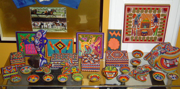 Not for sale, but astounding displays of Huichol artworks in customer / collector homes.
